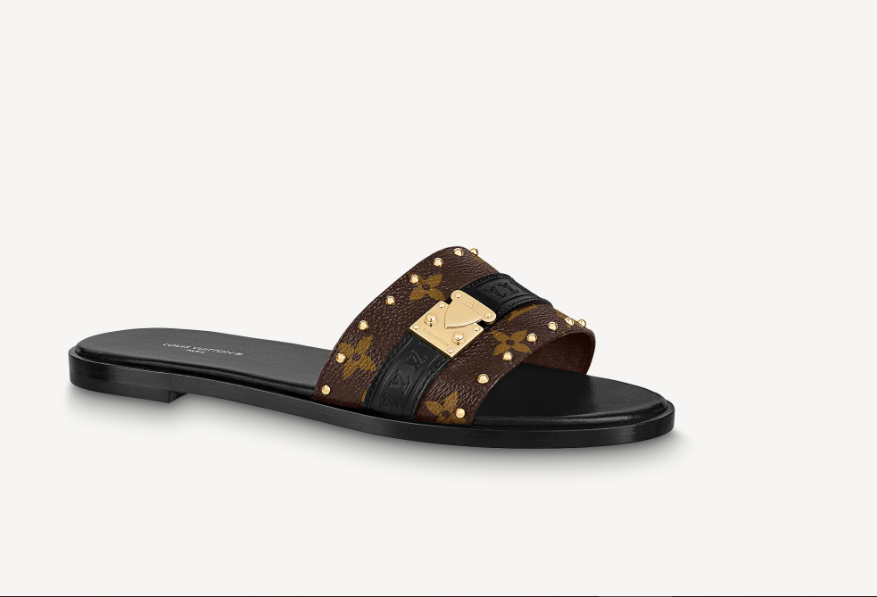 Cette mule plate Lock It est déclinée en toile Monogram vernie avec des détails inspirés de l’univers du voyage de Louis Vuitton. La tige présente une bride en cuir embossée des LV Initiales ainsi que des clous et une serrure en métal doré qui font référence aux malles emblématiques de la Maison. Une semelle intérieure matelassée et un petit talon carré assurent un confort exceptionnel.